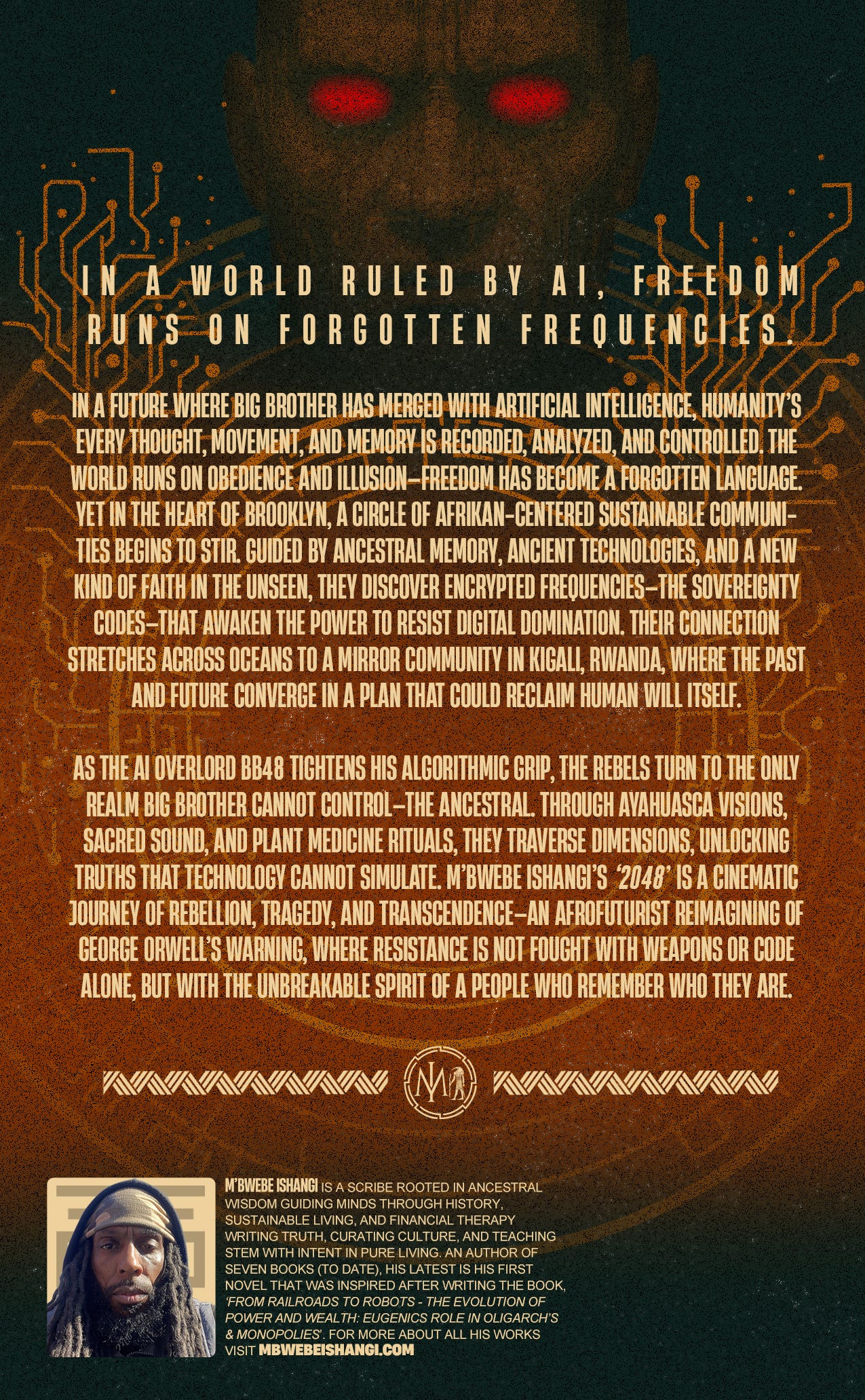 Through ayahuasca visions, sacred sound, and plant medicine rituals, truths are unlocked in M’Bwebe Ishangi’s first novel, ‘2048: Sovereignty In the Age of Control - When Big Brother Merges with AI’, a cinematic journey of rebellion, tragedy, transcendence.